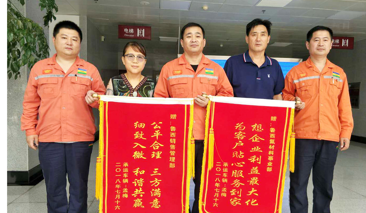 7月30日,东阿明鑫物流公司车辆负责人王长义、孟梅来到鲁西集团,激动地将印有“公平合理 三方满意 细致入微 和谐共赢”、“想企业利益最大化 为客户贴心服务到家”字样的两面锦旗送到销售管理部物流管理人员李登旭和氟材料事业部销售经理杨先旗手中,连声感谢。并向记者讲述了一则鲁西集团员工公平公正妥善处理亏吨事件的故事。