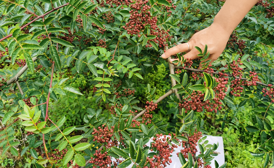 汉源花椒历史悠久,声名远播,蜚声中外。自唐代元和年间就被列为贡品,故又名“ 贡椒”。在四川汉源县宜东镇,一场蒙蒙细雨过后,天气转晴,但又不时飘过几片云彩,刚好挡住了夏日里烈火般的阳光。微风吹起,宜东镇的后背山上,花草树木,郁郁葱葱,空气清新,凉爽宜人。