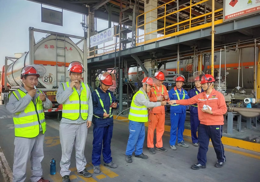 此外,为做好室外作业人员防暑工作,第三工程事业部、第四工程事业部、灌装站针对高温炎热天气纷纷开展“夏日送清凉”活动。第三工程事业部党支部分别在甲烷氯化物、有机硅事业部现场设置应急联络点,安排专人值班,配备对讲机便于联络,联络点放置血压计、测温枪、绿豆汤、以及藿香正气液、风油精等防暑降温药品,作业前值班人员首先对作业人员的体温、血压等情况进行测量,建立台账,以便于对员工身体异常情况及时掌握。第四工程事业部、灌装站党支部则分别为室外员工和外来司机送去纯净水、藿香正气液、淡盐水等防暑物品,表示慰问的同时积极听取大家的困难和建议,把关心和清凉送入现场,送入人心。