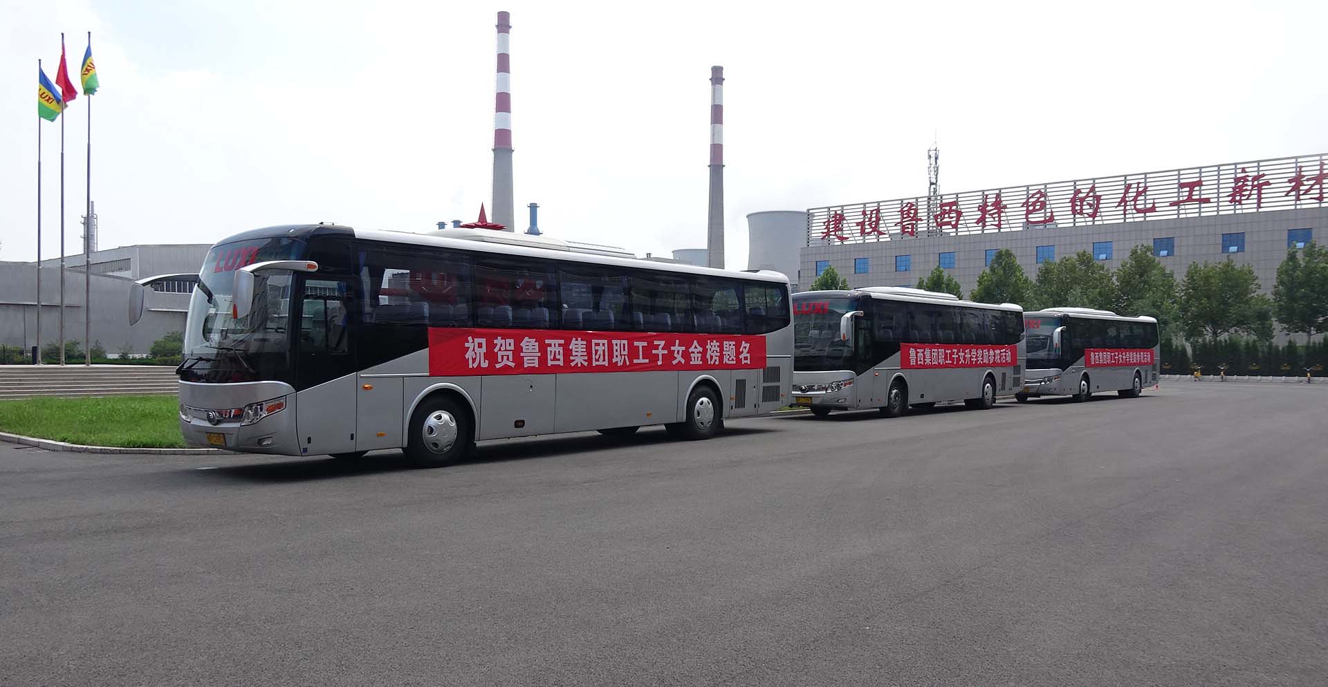 播放着鲁西集团之歌,满载着鲁西集团职工子女及家长的车辆,缓缓驶入工业园。