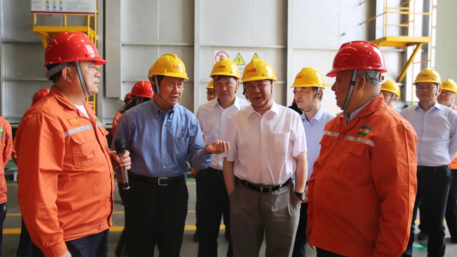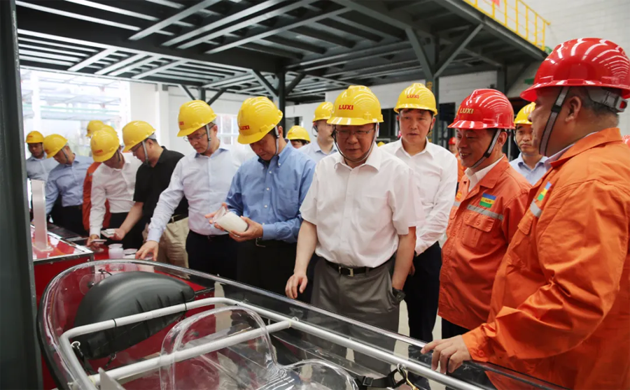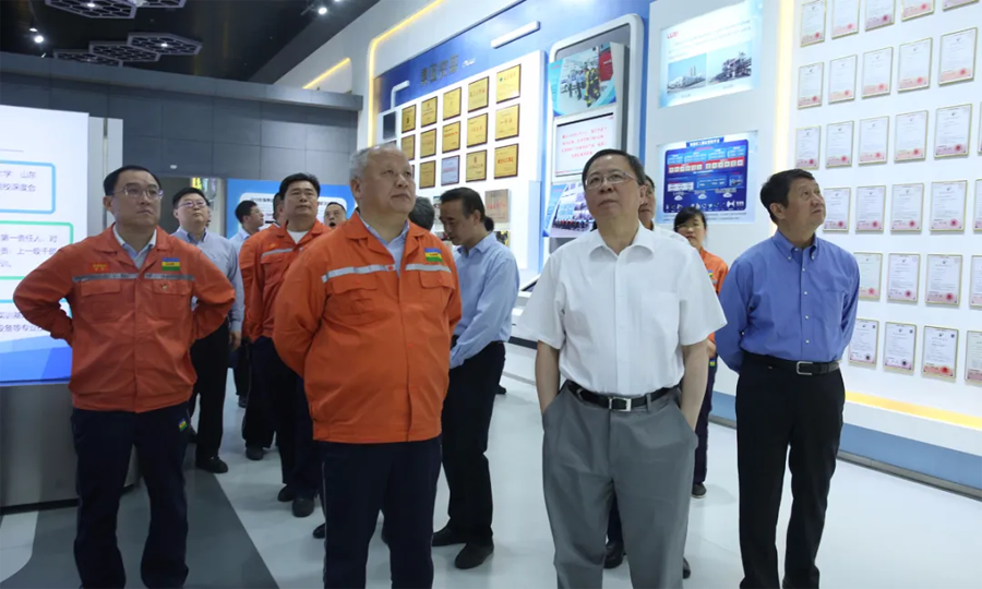 领导一行先后参观了园区重型装备、应急救援中心、尼龙6和聚碳酸酯包装现场、废水零排放、气化炉、固废处置现场、技术中心大楼和展厅。领导一行进车间、看现场、听介绍,和员工攀谈。现场了解了化工工程装备的强大制造能力,吸收再创新能力和先进的自动化水平;观看了鲁西应急消防设施配备和应急队员综合科目训练展示;了解了尼龙6和聚碳酸酯的产能、技术水平、下游产品和市场前景,以及气化炉的核心技术优势;听取了关于园区零排放目标实施,建设绿色化工园区、智慧化工平台建设和较高资质设计能力的汇报;并且通过参观展厅,细致了解了集团的发展历程、目前的发展状况和未来的发展规划。