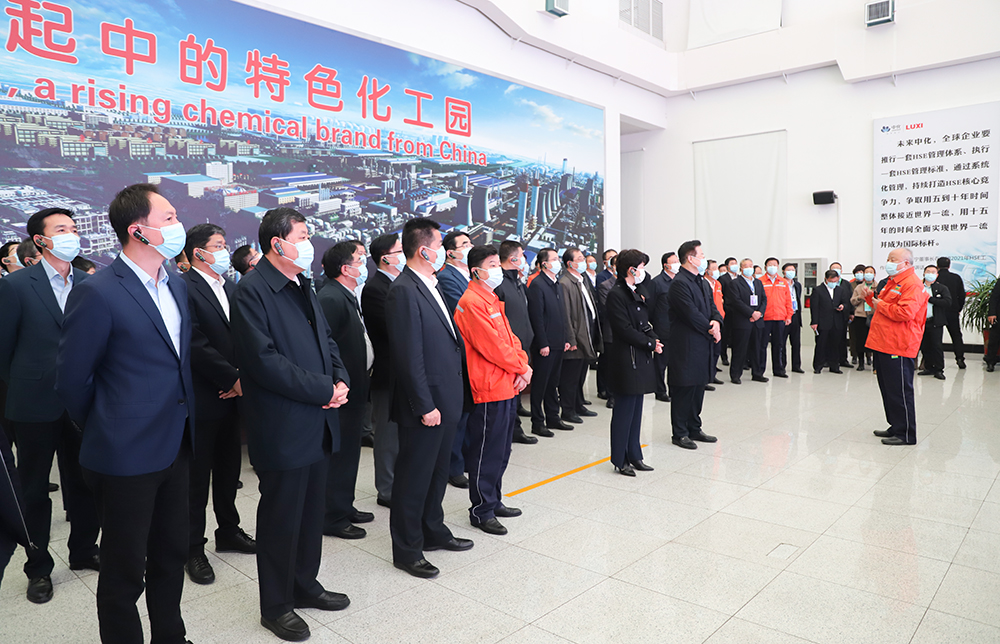 考察团一行相继参观了鲁西集团化工产业园区氟硅材料装置区、技术中心大楼实训基地和运行指挥中心、资源供给区、化工工程功能区、转型升级装置区以及新材料产业区。在技术中心大楼重点参观了实训基地,观看了鲁西集团企业综合发展情况汇报片,听取了张金成关于企业培训和近期整体运行情况以及下一步发展规划介绍。