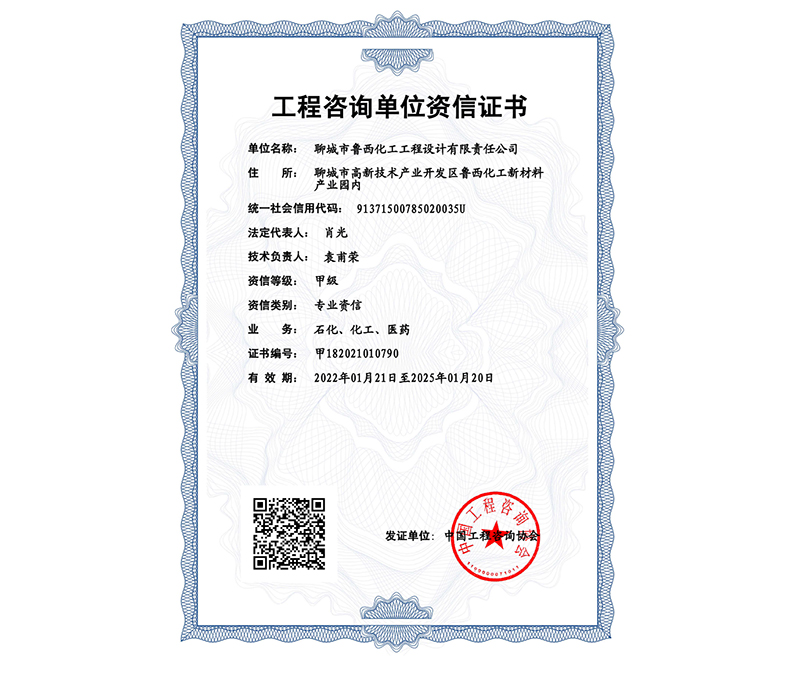近日,中国工程咨询协会发布《中国工程咨询协会公告2022年第1号》,鲁西集团设计院原石化、化工、医药专业乙级咨询资质顺利通过甲级资信评价,成功升甲。成为聊城地区唯一甲级咨询院。