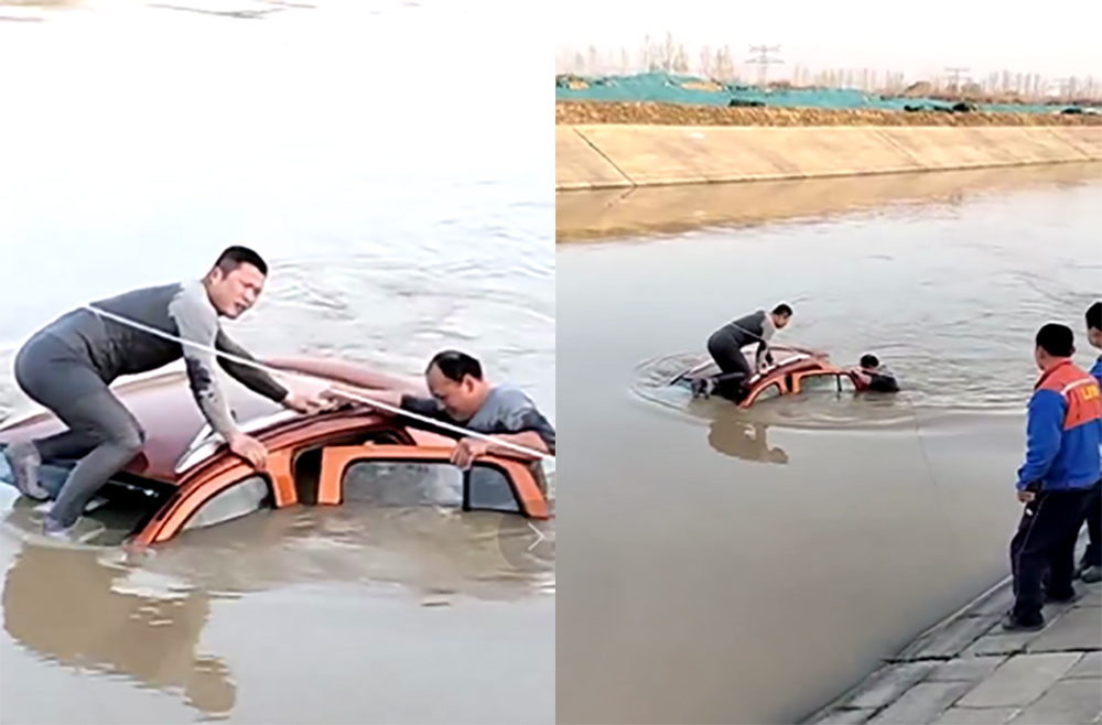 3月28日早6:30,325国道上车流如织,正是鲁西集团员工上班比较集中的时间段。此时,在一干渠河水中,有一辆近乎被水没顶的轿车自上游缓缓漂下。鲁西集团第二工程事业部员工刘继赟、孙庆旺行驶到325国道一干渠桥时,发现了这辆在河水中漂浮的轿车。二人随即停下车,近前查看。但由于河水已近淹没车顶,无法看到车内是否有人员存在。二人立即决定下水营救。