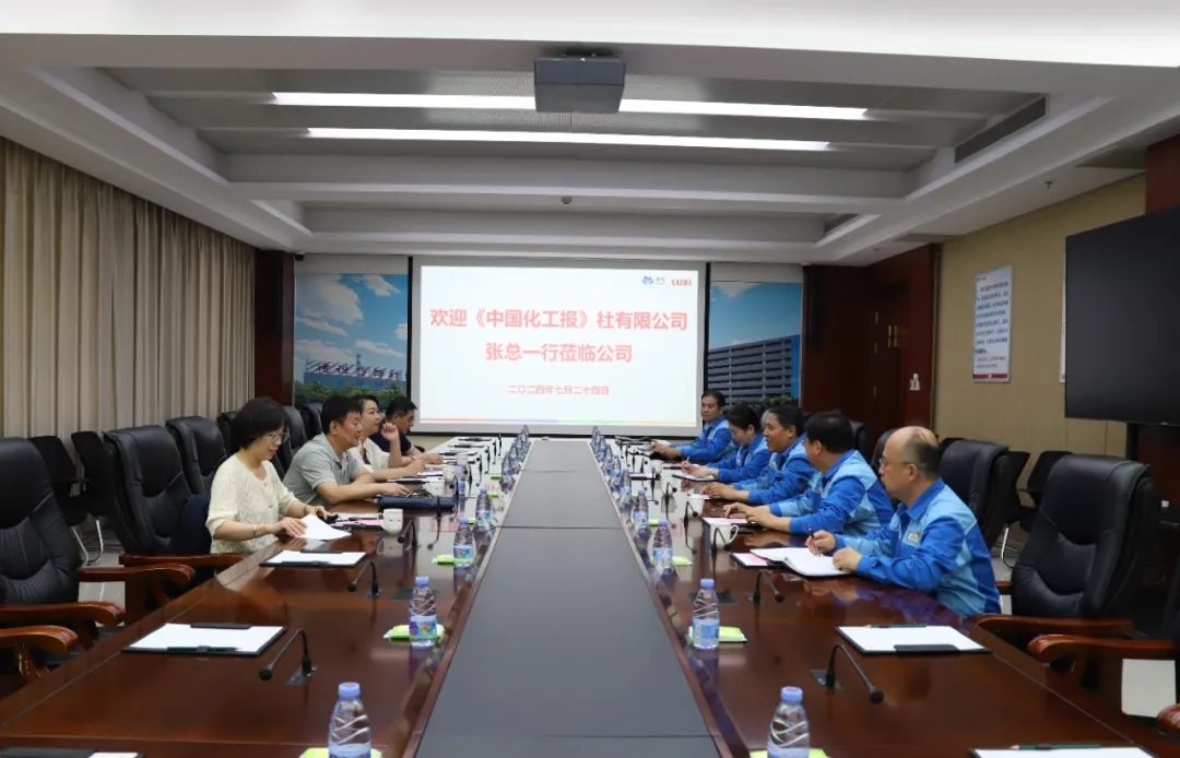 7月24日,《中国化工报》社有限公司总编辑、总经理张健秋一行来公司调研采访,公司总经理、党委副书记王延吉,副总经理姜吉涛等参加活动。