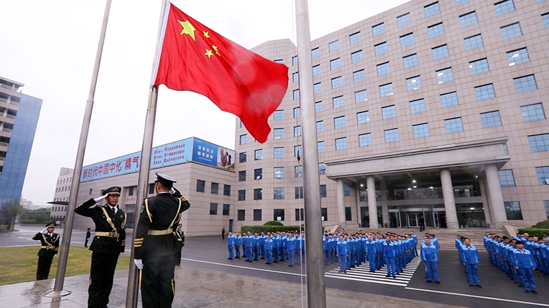 9月30日清晨,天降甘霖,雨润大地。鲁西集团组织职能部门200余名干部员工举行庄严肃穆的升旗仪式。